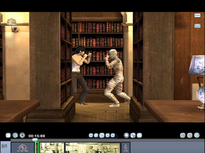 themovies4sm.jpgMachinima goes Hollywood - well not quite. In a development that could be a first step of big Hollywood studios implementing gaming technology to actually "render" their films (and that WILL happen soon) a lot of smaller studios contracted for PreViz - which is like making a live action storyboard that looks like the final film just without great acting, perfect lighting, texturing etc - more to see camera angles, needed props and tax the films cost - are start using game engines to make those previz films. Up to know they have build "simple" 3d sets and puppet actors in 3D applications and then animated them there and rendered out the result without much texture lightning fuzz - mostly using the almost realtime OpenGL implementations of certain 3D programs. As it looks right now Game Engines are not exactly up to snuff in accuracy of camera positioning but this is about to change soon.