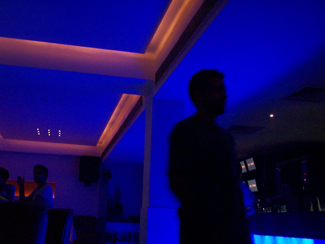 gegen ein zwei uhr war dann auch das disco hiphop geschwurbel zu ende und ich hatte erstmals die leise hoffnung, das man mit elektronische tanzmusik einige schöene abende hier verbringen kann. der anspannung der veranstalter war leider kein schönes ende des abends beschert. so gegen drei uhr kam bei rummy, der so langsam seinen erfolg als clubgestalter zu geniessen schien wieder hektik auf. diese kommentierte er mir gegenüber mit dem satz,"there is a fight outside". ich hab nicht genau verstanden was da passiert ist. irgendein neureichen ego schien durch irgendein anderes neureichen ego verletzt. und man hielt es für nötig den konflikt wie männer auszutragen.
