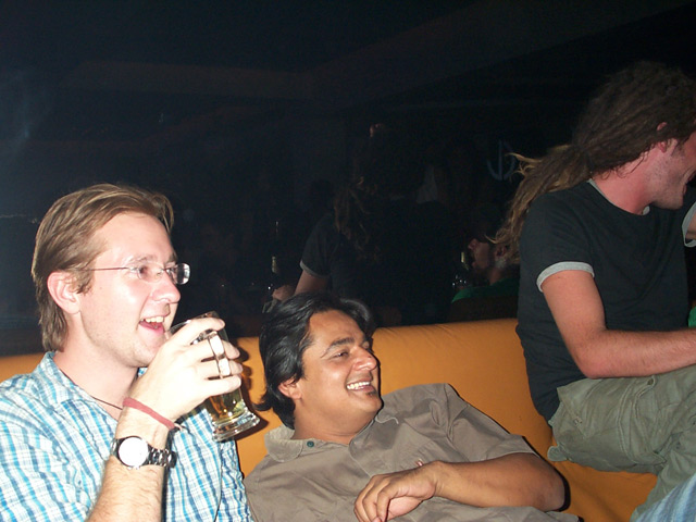 gestern sind wir nochmal schön feiern gewesen und ich hab versucht halbwegs allen im club auf wiedersehen zu sagen. bei all dem fluchen über meine kleine disko hat man sich doch an diesen ort und vor allem an die leute gewöhnt. mein resident anupam hat versucht sich in meinem case zu verstecken als ich sagte das dies mein letzter abend ist. jetzt muß er die abende immer alleine durchstehen, auch wenn unsere conversation im normalfall nicht immer sehr ausführlich war werde ich den dicken vermissen.