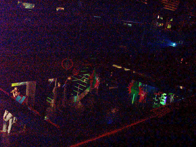 aber ich will nicht unken. der abend begann dann sehr entspannt mit einem kurzen gespräch über vjing sinn und unsinn und meine aufgabe dabei. gesprächspartner war der journalist einer club-nachrichten sendung auf channel sieben.
