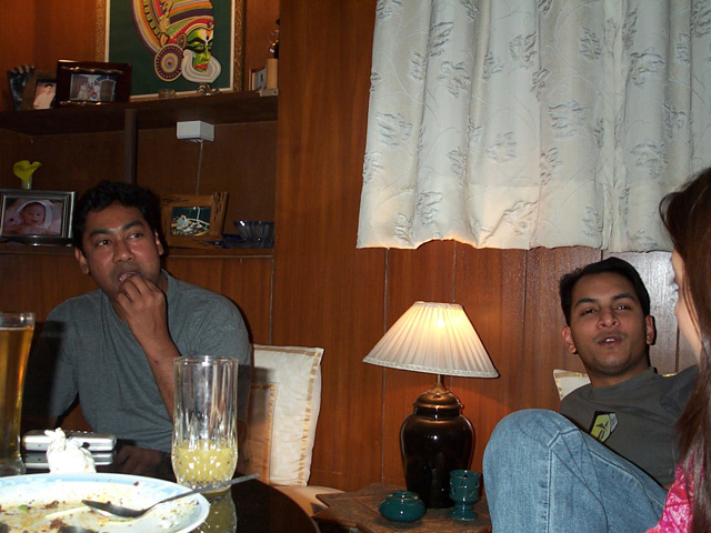 das war doch mal wieder nett, samstag haben mich yasmin, die zurückgebliebene freundin von dave (hach ich liebe diese wortspiele), und ein freund von ihr aus london im club besuchst. im club ist samstags immer schweres diskodiktat angesagt also haben wir die ersten zwei stunden erstmal draussen gesessen und das nötigste besprochen, nach dem die erfrischungsgetränke dann ein wenig lockerheit in die runde gebracht haben, gab es dann auch noch ein wenig anlass zu tanzen, als dann so gegen 3uhr das licht langsam anging, stellten wir fest das ein wenig zusammen rumhängen vielleicht eine schöne abwechslung von einer arbeitsreichen woche für uns alle wäre. die freundlichen menschen vom club unterstützen unser ansinnen mit einer anständigen flasche indischen rotweins. ich also meinen plunder gepackt und auf ging es mit einer rickshaw nach cr.park. hach immer wieder ein entspannter ausflug in den süden. wir haben noch eine ganze weile im wohnzimmer gesessen über den sinn und unsinn der welt und indien im speziellen geredet, als ich dann irgendwann mein sprachzentum zu schrumpfen anfing, beschloß ich die nächstgelegene matratze für mich zu beanspruchen.