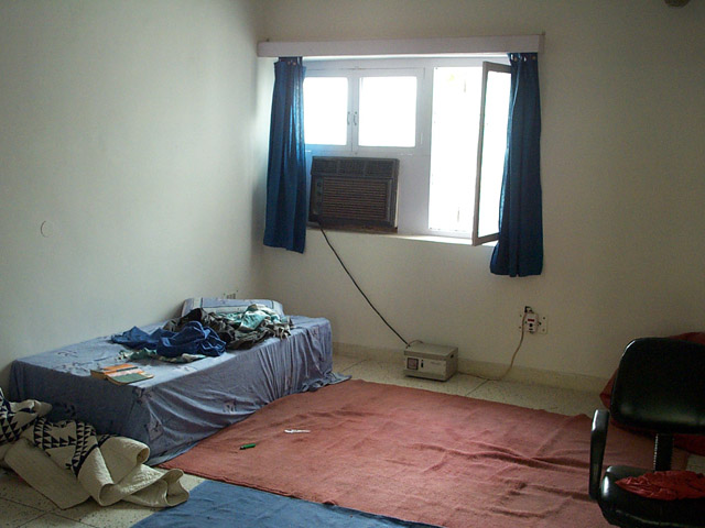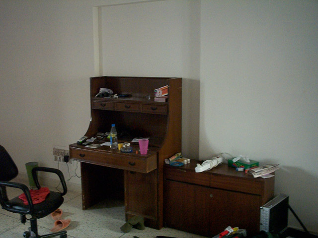 mein zimmer ist sehr schlicht eingerichtet und niemand von euch hat erwartet das ich aufräume bevor ich bilder mache. ein bett, ein schrank, ein tisch und ein sitzsack. ach ja und mein freund die klimaanlage.