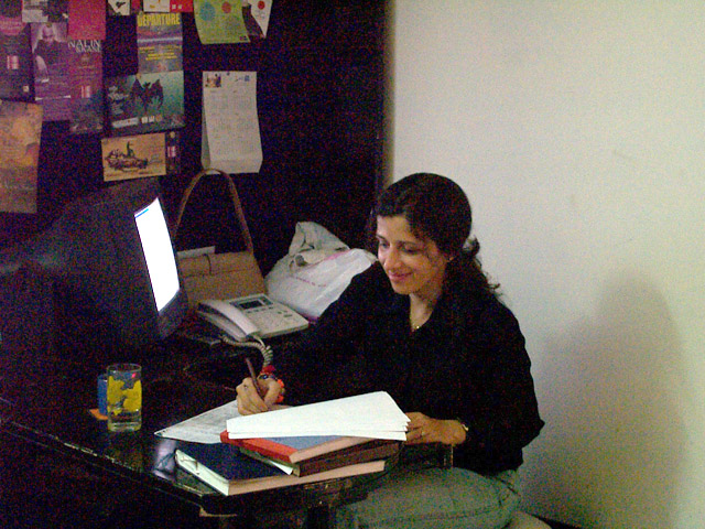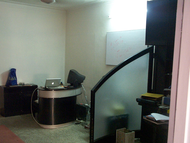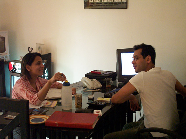 neben dran ist das büro von studio bakers, hier sind immer irgendwelche leute am start, hauptbesetzung sind ritu, rummys schwester und reena, die sekretärin. dann arjun, der auch dj ist und mit im büro aushilft. ach und die beiden jungs die uns wasser bringen, kaffee kochen und das essen machen, wenn uns danach gelüstet.