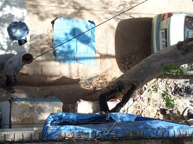 nach einem kleinen imbiss am naechtlichen dj treffpunkt connaught place, ha mich dann eben erwaehnter nach hause gefahren. auf dieser kleinen reise hab ich etwas gesehen was auch fuer deutschland ein guter weg zur vollbeschaeftigung ist. schafft die bloeden baustellen beleuchtungsstaender ab. hier setzen die einfach einen die ganze nacht auf die strasse der das blinklicht haelt. einen euro die stunde kann man dafuer schon ausgeben.