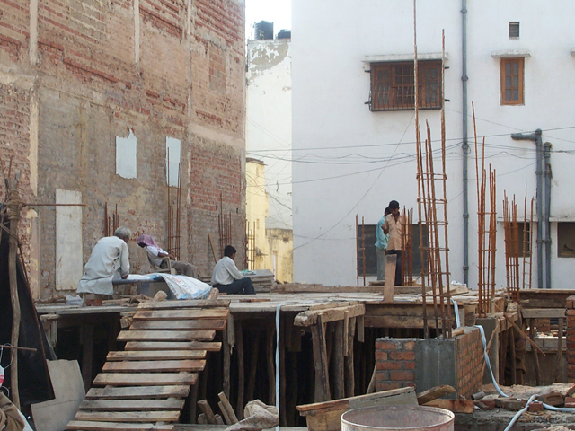 am nächsten morgen also, schnell noch das nötigste für den weg gekauft und los gings raus aus der stadt. vor den toren delhis werden gerade unglaubliche ghettos für reiche leute gebaut. menschen die in den oberen etagen der internationalen konzerne arbeiten und die keine lust haben im dreck und chaos der innenstadt ihre besorgungen zu verrichten.
