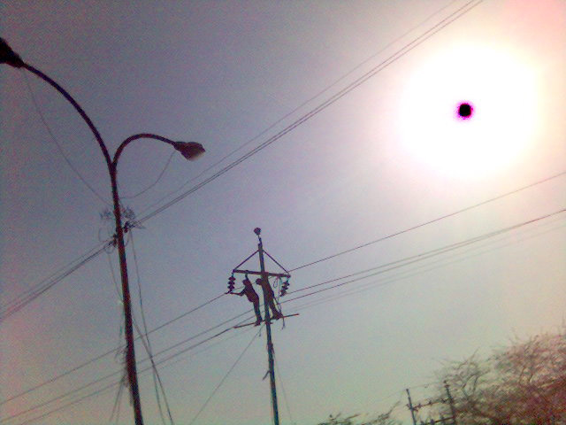 so alkohol hatten wir also schon nun wieder ein paar meter zurück über die stadtgrenze und rein in eines der kleinen restaurants, wobei sowohl klein als auch restaurant nicht ganz zutreffend sind. das ganze war eine ansammlung von weißen mauern, die sehr werbewirksam mit grossformatigen lettern beschrieben waren (nein ich hatte keine kamera mit) irgendwie ein dach drauf gesetzt und ein rudel ventilatoren rein, fertig ist das restaurant. die bestellung wurde unsererseits beim reinkommen in recht rüdem ton mittgeteilt, warum kann ich nicht sagen. ich denke auch dies ist der alkoholgeschwängerten luft im inneren von jugendlichen zuzuschreiben, die zwar auch wissen das dies nicht das ritz carlton ist, aber man hier wenigstens mal befehle geben kann. dann hatten wir uns gerade einen sitzplatz gewählt, zack saßen wir im dunkeln. strom weg wir auch weg, wieder ins auto und erstmal im rückwärtsgang 200 m die autobahn entlang.