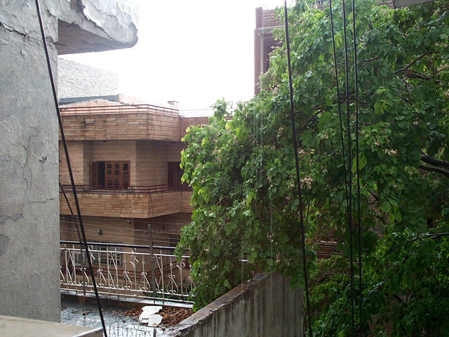 Man sitzt ganz unschuldig im zimmer und bastelt ein wenig am computer rum, nachdem man trotz brütender hitze schon am nachmittag einen kleinen spaziergang hinter sich gebracht hat. komisch die ventilatoren sind hier zwar recht gut aber das sie die fenster zum klappern bringen war mir noch nicht bewußt. ein feuchtfrischer windstoß lässt dann endgültig zweifel and er normaltiät des tages aufkommen. das ist besser als duschen, ich hab mic auf die terrasse gestellt und war innerhalb weniger sekunden klitschnaß. nach einem monat hier das erstemal ein paar tropfen wasser von himmel, ein richtig zünftiger platzregen wie er im bilderbuch steht. leider wird es hier gerade schon dunkel, ich hätte gern noch ein paar aufnahmen mit der schönen nach regen stimmung gemacht. die bäume lachen gerade...gruß zum sonntag, hab mich lange nicht so über schlechtes wetter gefreut.