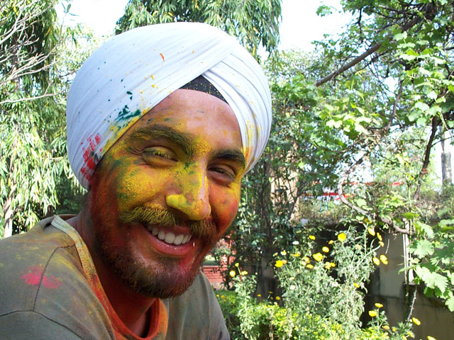 Nach der durchaus anstrengenden ersten nacht und immer noch ein wenig aus der zeit geschossen, wurde ich am samstag eingeladen zu einer holi feier. holi ist das fest der farben, kulturell gesehen irgendeine goetter geschichte, die ich aber leider noch nicht erschoepfend nach recherchieren konnte. praktisch gesehen sowas wie karneval ohne verkleiden, nur mit farbe in gesicht schmieren.