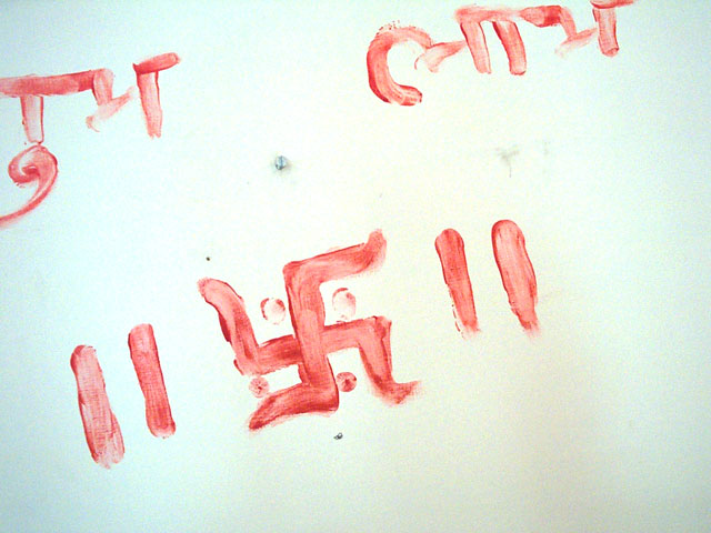und hakenkreuzschmierereien an der wand