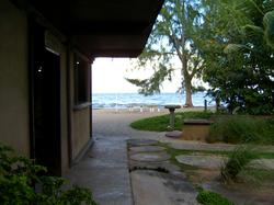 a two room cabana residence, completely furnished, sleeping two persons seperately and comfortably with full kitchen and bath cable tv, radio and books. front doors lead on sun decks overlooking courtyard, sunken garden , arbor, birdbath and splendid collection of tropical plants. the golden sand beach is wide, clear and clean, with a handy sea-side shower. kayaks and bicycles are available for casual sport, hammocks strung in an open shaded lobby if you prefer tranquil inertia. $15.00 U.S./person