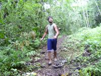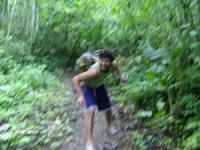 Mit unglaublich sinnvollen flip flops ausgestattet startete gestern der Entdeckungsreisende in den Urwald, das Basislager Mama Noots diente ihm als Parkplatz und Reservenauffrischungsstelle (was für ein Wort). Von dort aus ging es 3 km in den Jungle. Über Stock und Stein, Schlangen und Frösche bis hin zum legendären Wasserfall, von Menschenopfern wurde abgesehen, denn weisses Fleisch is dem furchtbaren Urwaldherrscher nicht bekömmlich. Dafür ließ er eine Armee von kleinen Mistfiechern auf den Entdeckungsreisenden los. Der Endeckungsreisende ließ die kleinen Arschlöcher gewähren und hatte dadurch gut ein Lieter Blut verloren. Zurück im Basislager wurde das fehlende Blut durch Rum ersetzt. Mit Wahnvorstellungen und Schwellungen am ganzen Körper fiel der Entdeckungsreisende endlich in ein fiebrigen von Alpträumen durchwachsenen Schlaf.