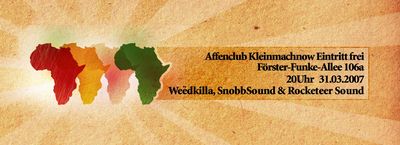 Mit freude darf ich verkünden das die JFE Kleinmachnow in Zusammenarbeit mit dem Affenclub wieder ein Soundclash veranstalten. Klar, das ist jetzt nicht der weltgrösste Clash, wie letztes mal geht es vielmehr darum dem Jungvolk zu zeigen das es gewaltfreie Wettkämpfe gibt bei denen man sogar tanzen kann. Bei freiem Eintritt darf man auf zahlreiches erscheinen der Jury doch sehr hoffen. Gegeneinander antreten werden Snobb-Sound vs. Rocketeer Sound