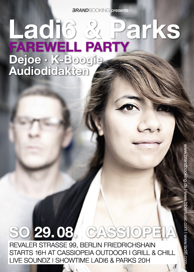 Es ist so ne Art „Matinée“ und gleichzeitig das letzte Europa-Konzert in diesem Jahr. Ab 16Uhr Grill & Chill BBQ im Außenbereich des Cassiopeia. 19Uhr legen Cutrock & sean2bealive ein kleines Pre-DJ-Set auf. Showtime von Ladi6 & Parks ist um 20Uhr. Die Aftershowparty mit audiodidakten, K-Boogie & Dejoe startet dann ab ca. 21.30Uhr. Es lohnt sich also gleich doppelt.